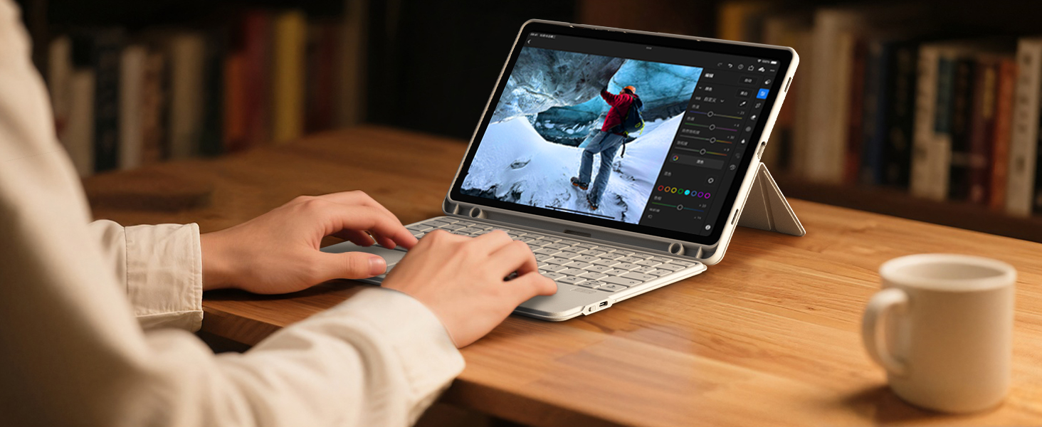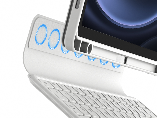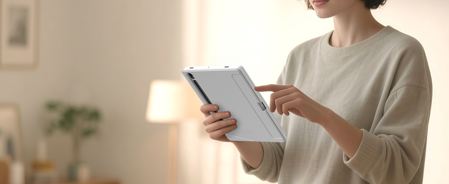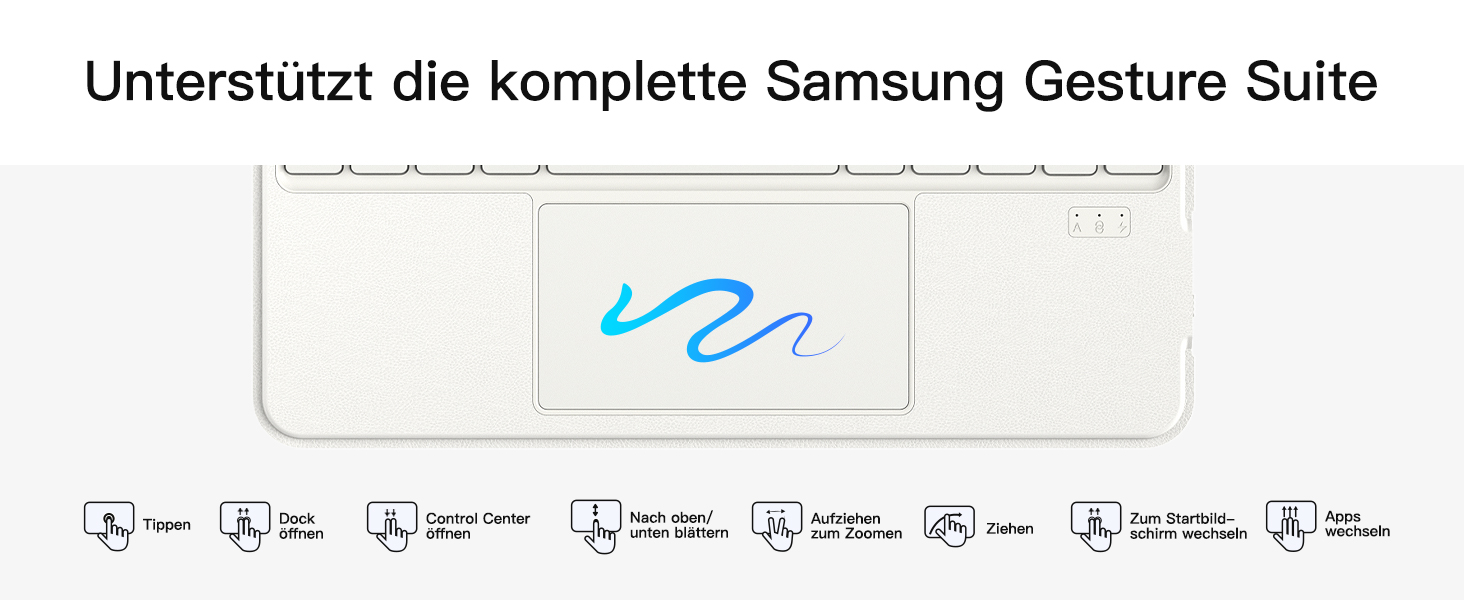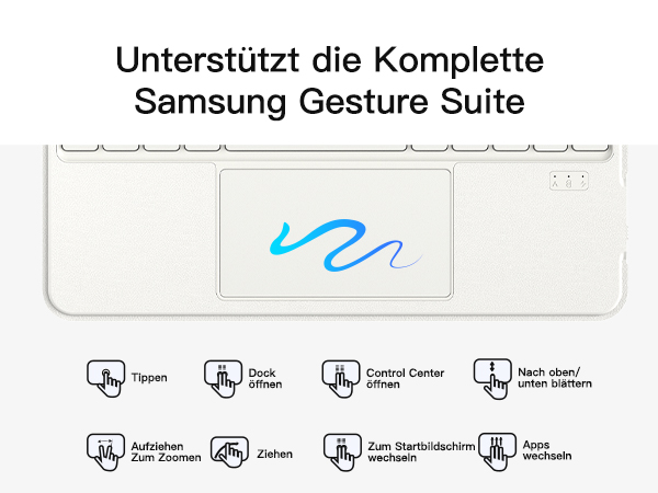 Unterstützt Samsungs Precision Touch-Funktion. Das Touchpad unterstützt Mehrfingergesten und ermöglicht so eine einwandfreie, präzise und verzögerungsfreie Bedienung. Einfaches Browsen, Klicken und Wechseln zwischen Apps. Integrierter Bluetooth 5.3-Chip. Öffnen Sie die Abdeckung, um den Bildschirm einzuschalten, schließen Sie sie für den Ruhezustand und wählen Sie die Inateck tastatur für tablet zum einfachen Energiesparen