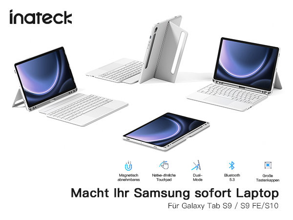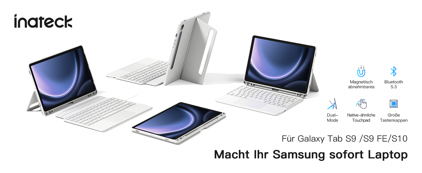 Inateck Hülle mit Tastatur für Samsung Galaxy Tab S10 Lite 2025/Tab S10 FE/S9 FE/S9,Tastatur für Tablet Hoch-/Querformat Ständer,Abnehmbar, mit Touchpad,QWERTZ, AceTouch N0064