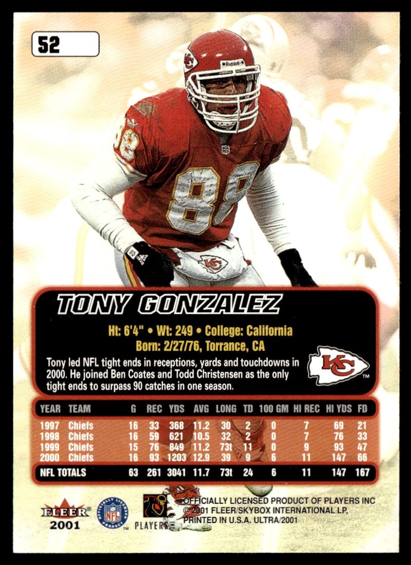 2001 Ultra Tony Gonzalez Kansas City Chiefs #52