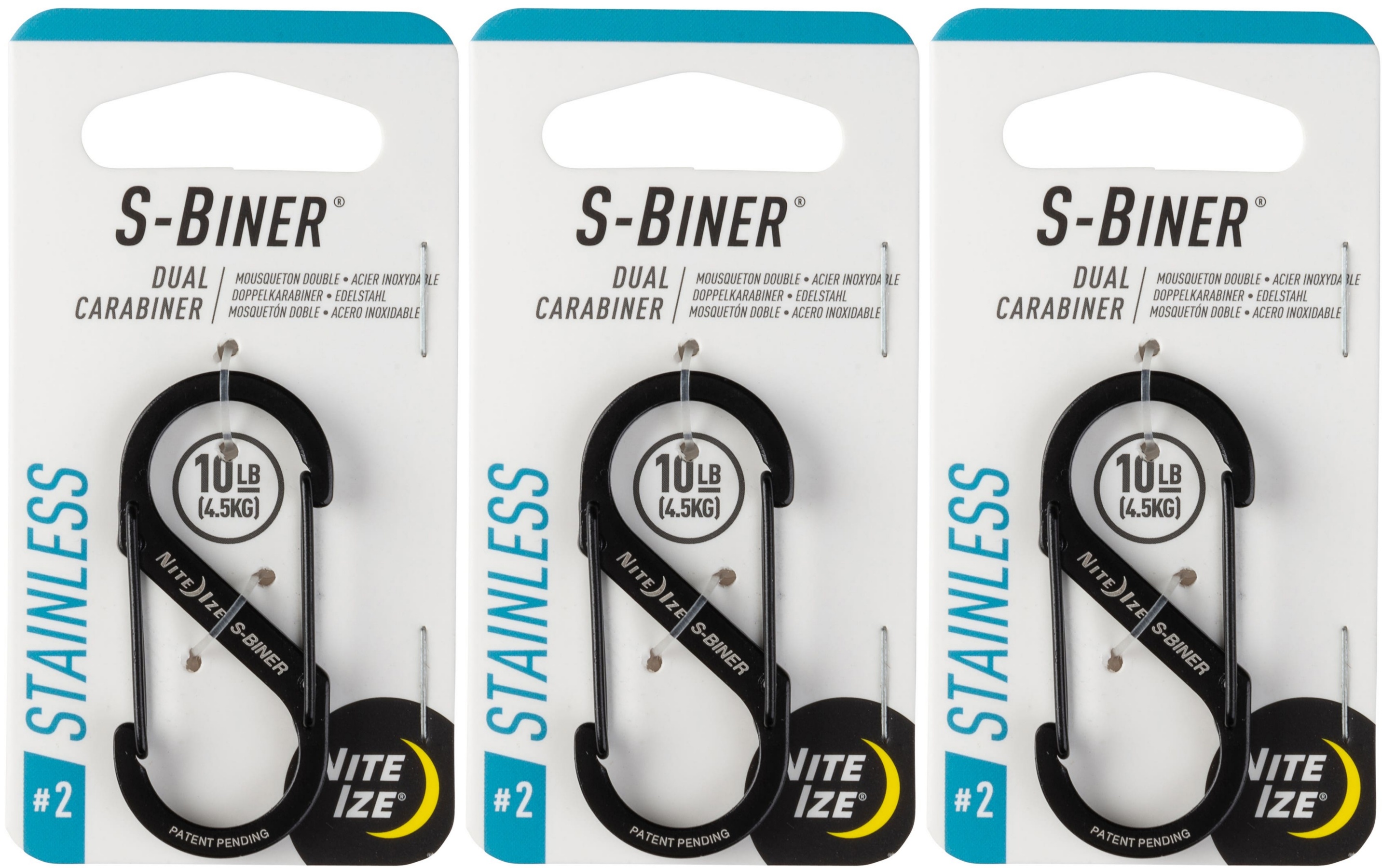 Nite Ize S-Biner Stainless Steel Dual Carabiner #2 - Black (3-Pack)