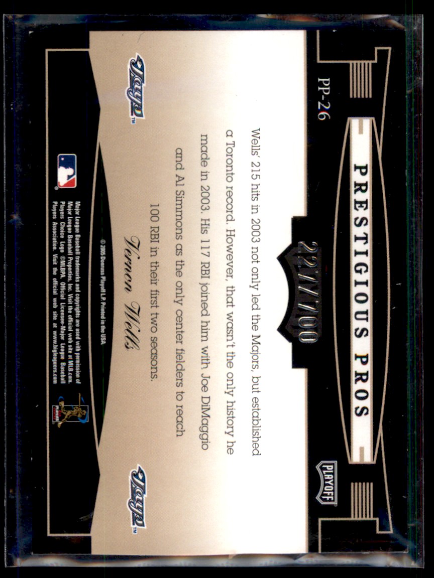 | 2005 Playoff Prestige Prestigious Pros Red Vernon Wells 221/700 Toronto Blue | ||||||||||||||||||