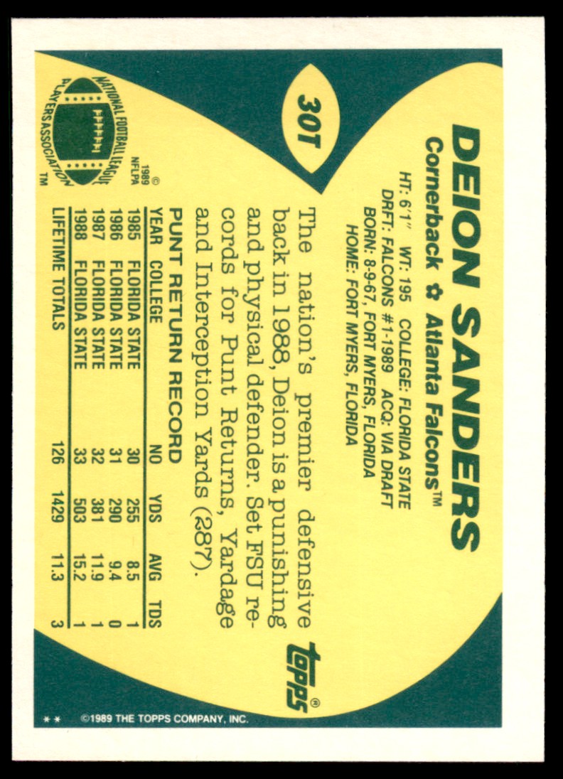 | 1989 Topps Traded Deion Sanders RC Atlanta Falcons #30T | ||||||||||||||||||