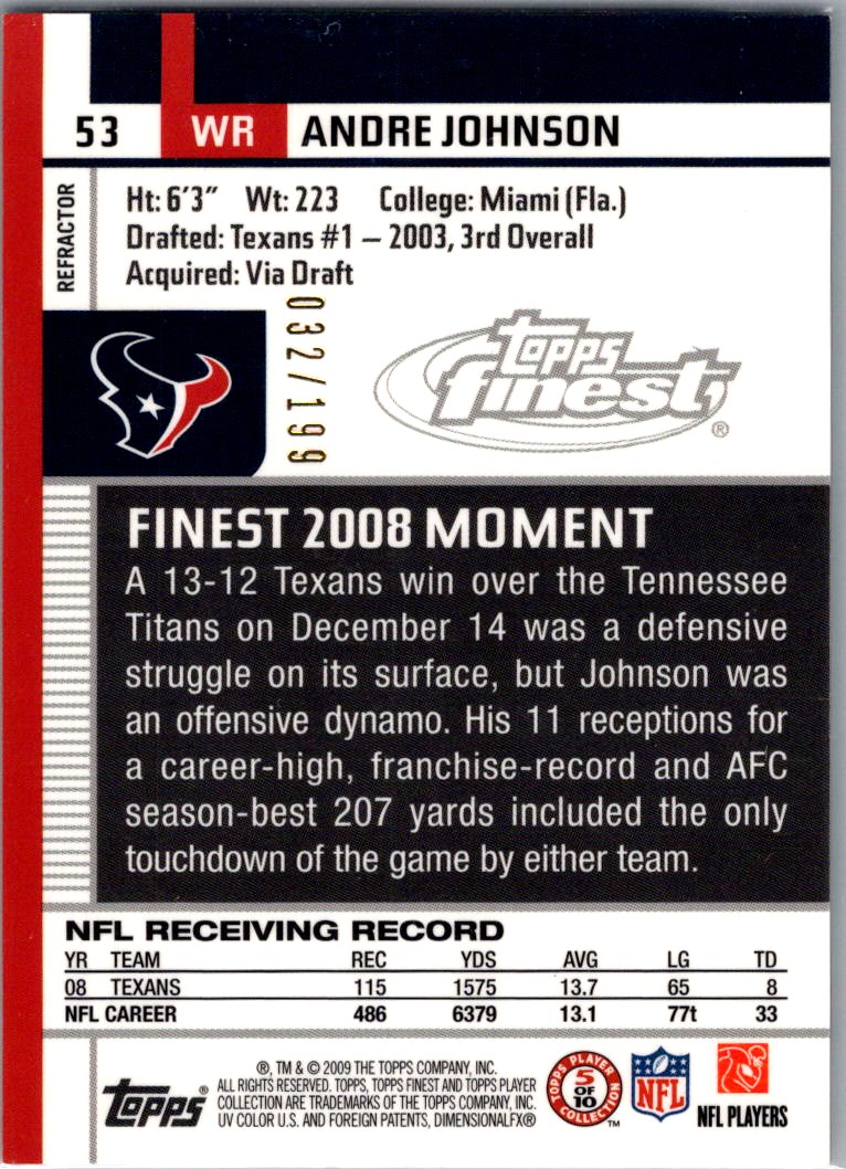 2009 Finest Green Refractors Andre Johnson 032/199 Houston Texans #53