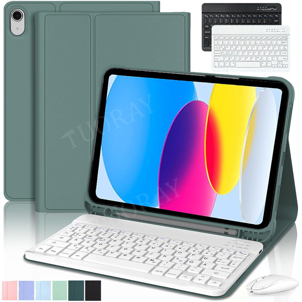Für iPad 10/11 Gen A16 2025 11" 10,9" Hülle mit QWERTZ Bluetooth Tastatur Maus