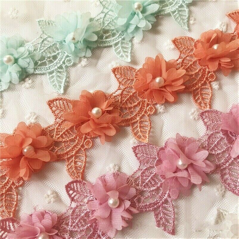 Flower Pearl Lace Embroidered Applique Wedding Ribbon Dress Garment Decoration
