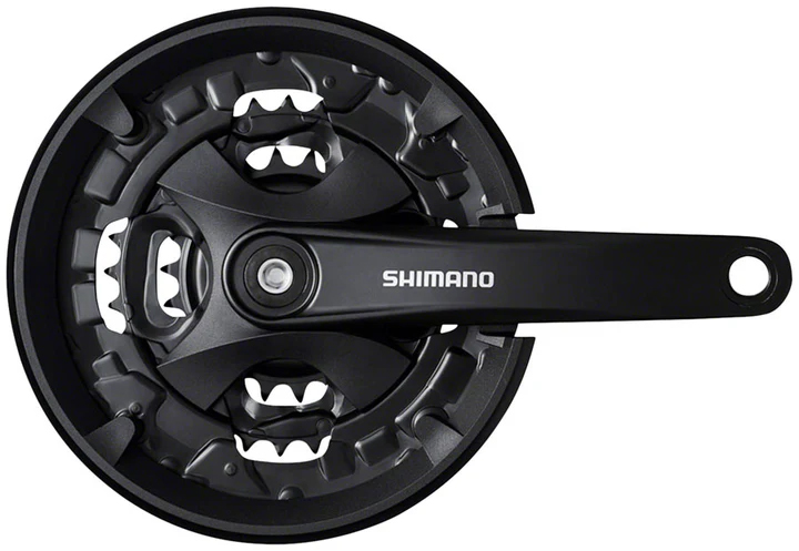 Constructed with high-quality steel and precision-machined components, the FC-MT101 ensures long-lasting durability while maintaining a lightweight profile. Its triple chainring setup (40/30/22T) provides a wide gear range to tackle steep ascents and varied terrain, while the riveted chainring design ensures secure attachment and longevity. The crankset features a Square Taper JIS interface, allowing straightforward installation and compatibility with a wide range of mountain bikes.