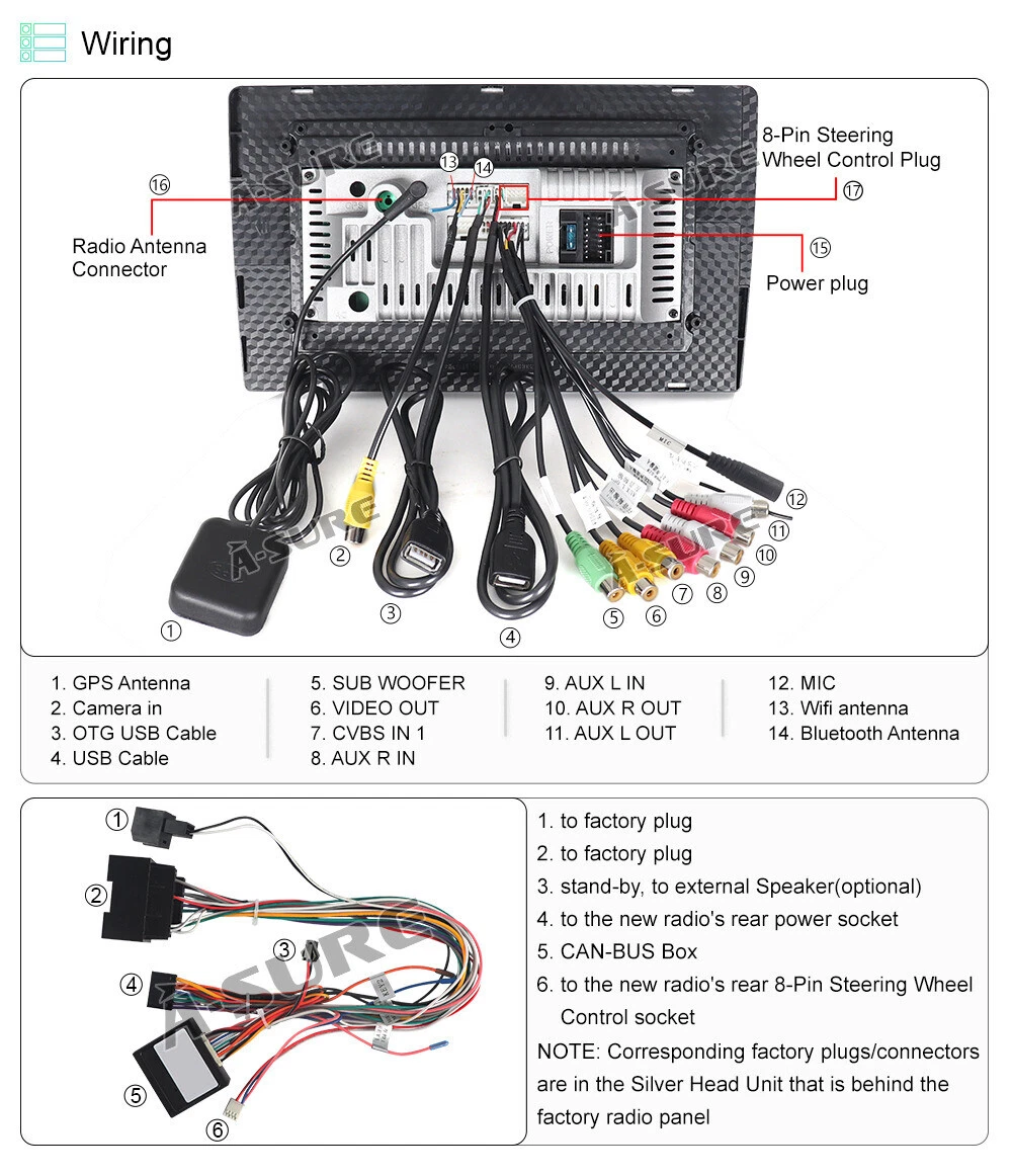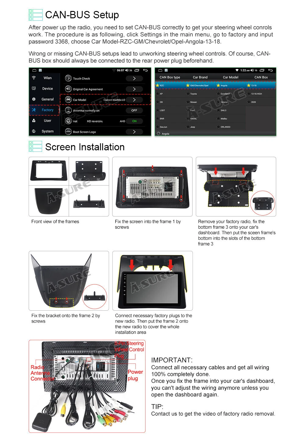RDS/FM Radio & Bluetooth & ASP Sound: Supports Bluetooth 4.1, with built-in microphone so you can make hands-free calls while driving. Support access to phone book, music playback interface, etc. RDS supported. You can save 18 FM radio stations. Built-in ASP chip. Supports 32-band EQ setting, which can be adjusted according to your personal preference. Which is very similar to your original sound. 4 x 45W amplifier, surround sound and subwoofer output