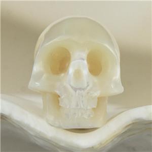 This pearl skull is fully vertically drilled from top to bottom with an approx. 1 mm diameter drill hole.