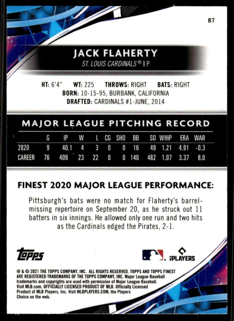 2021 Finest Jack Flaherty St. Louis Cardinals #87