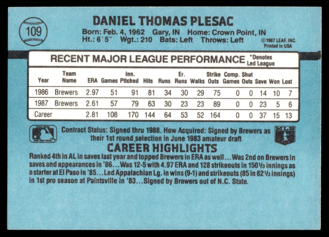 1988 Donruss Dan Plesac Milwaukee Brewers #109