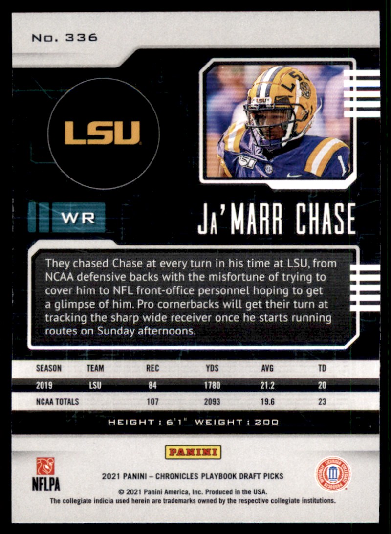 | 2021 Panini Chronicles Draft Picks Playbook Blue Ja'Marr Chase RC LSU Tigers | ||||||||||||||||||