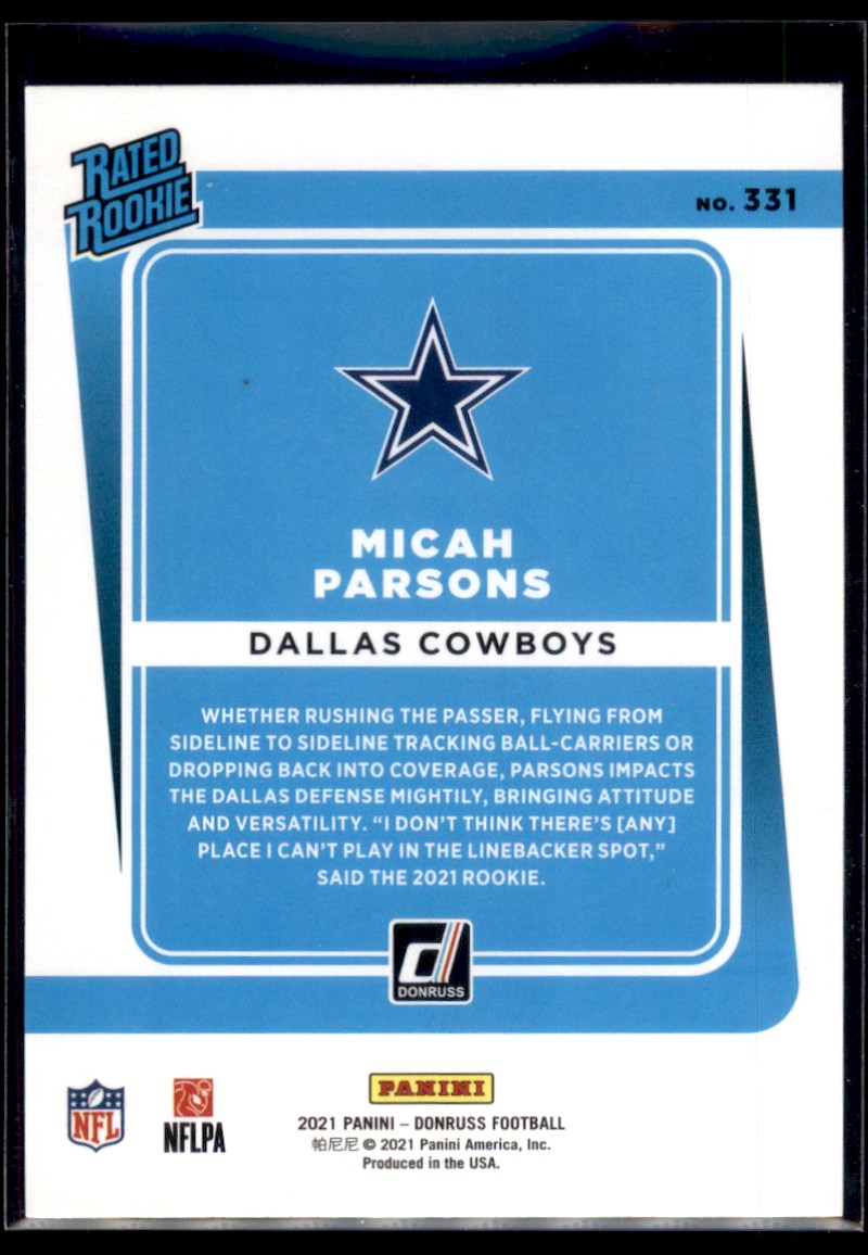 | 2021 Donruss Rated Rookies Micah Parsons RC Dallas Cowboys #331 | ||||||||||||||||||
