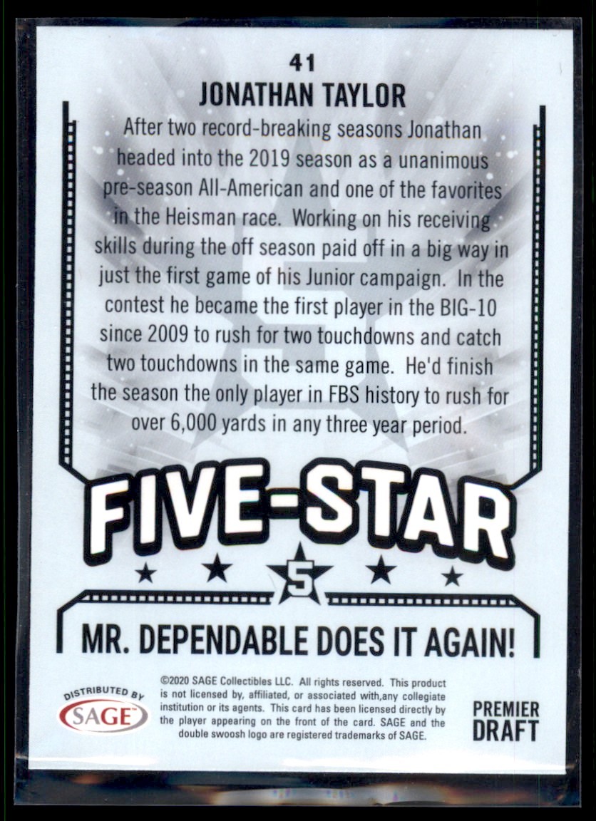 | 2020 SAGE HIT Jonathan Taylor RC Wisconsin Badgers #41 | ||||||||||||||||||