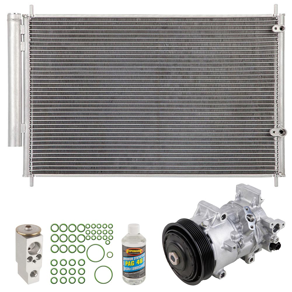 This 5 piece Premium Installers AC Kit includes an OEM new AC compressor, condenser with built in accumulator/drier, expansion device, a bottle of AC compressor oil and a pack of the correct o-rings for your system to prevent leaks. This kit is designed to include all of the right parts to make the repair process easier and save you money. The accumulator/drier used in your AC system is built into the condenser, so to make things easier this kit includes a new condenser with built in accumulator/drier.