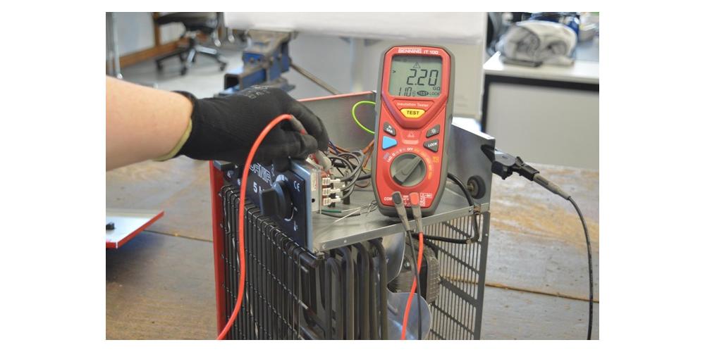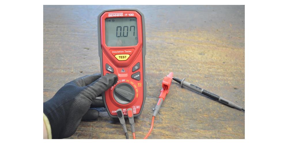 Isolations- und Widerstandsmessgerät für Niederohm- (60 Ω), Isolationswiderstands- (20 GΩ, Prüfspannung 50 V - 1000 V), Widerstands- (200 mA Prüfstrom), Spannungsmessung, Polarisationsindex (PI), dielektrischer Absorptionsgrad (DAR), mit roter LED für Prüf-/ Fremdspannung, automatische Entladung, Nullabgleich, Lock, CAT IV 600 V.