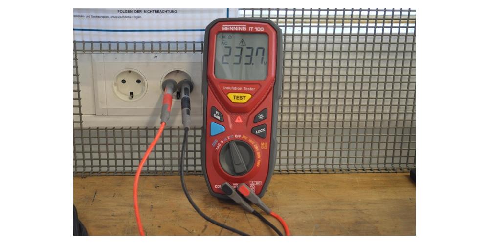 Leerlaufspannung (Uo/c) bis 1500 V DC über 4 mm Sicherheitsbuchsen (PV-Kurzschlussschalter, BENNING CM 3-PV), Kurzschlussstrom (Is/c) bis 23 A DC (bei 1500 V) sicher schalten, messbar über Kurzschlussbrücke (MC4 kompatibel) und Strommesszange, Isolationswiderstand (Riso) über 4 mm Sicherheitsstecker (PV-Kurzschlussschalter, BENNING IT 100), Isolationswiderstand bei Kurzschluss und im Leerlauf des PV-Strangs messbar