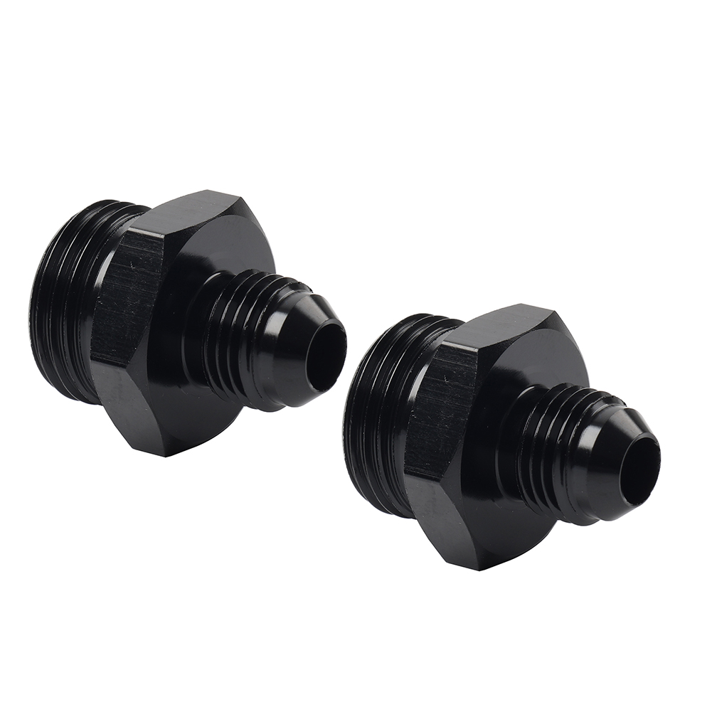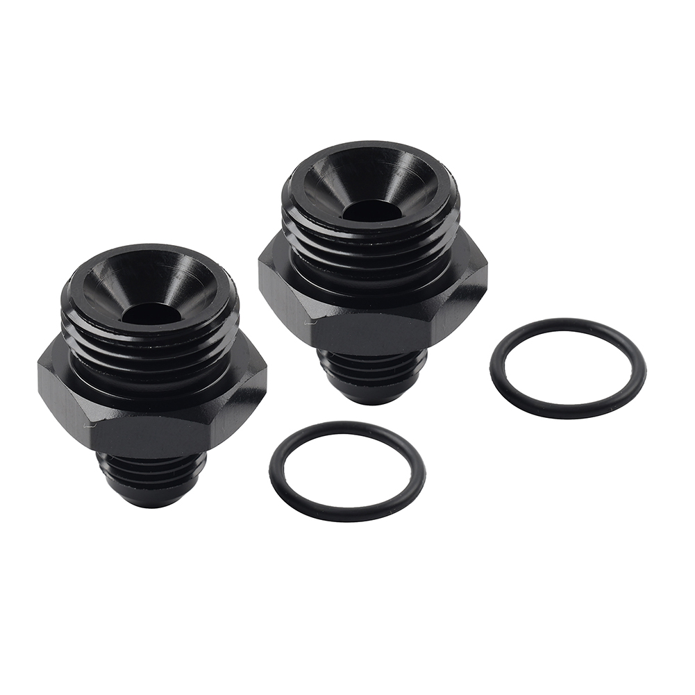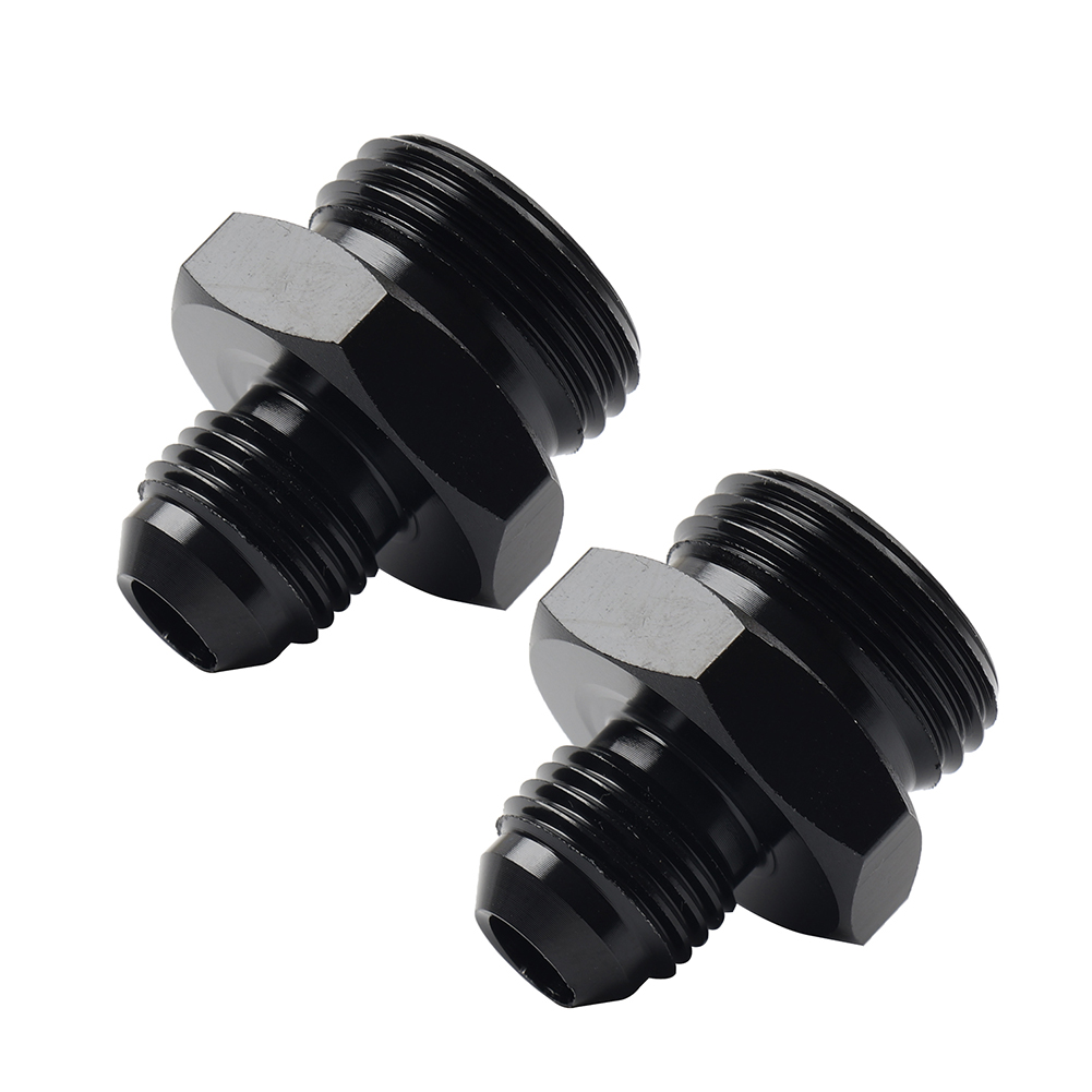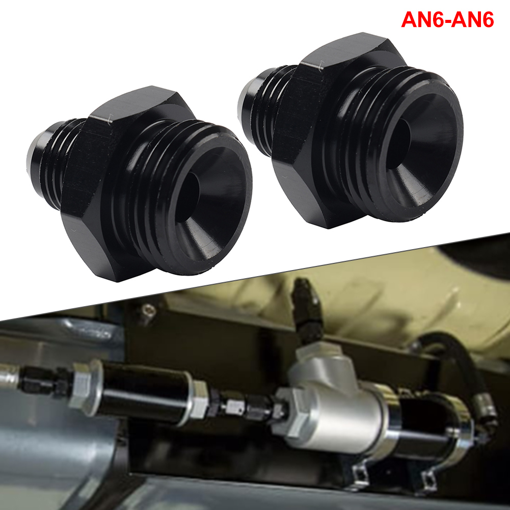 2Pcs Black Aluminum AN6 Flare to 6AN ORB Male Fitting Adapter with O-Rings