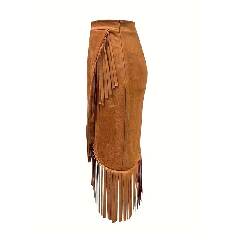 The vintage cowgirl tassel and fringe wrap hem design adds a trendy and retro western touch, making you stand out in the crowd with a unique and fashionable look.