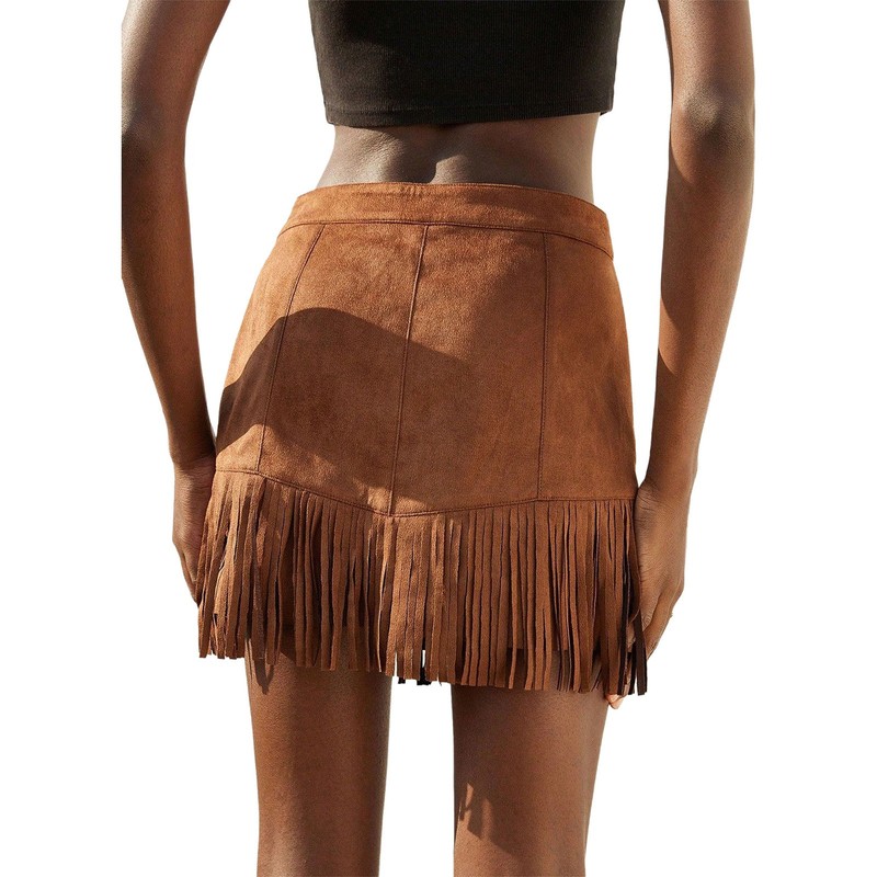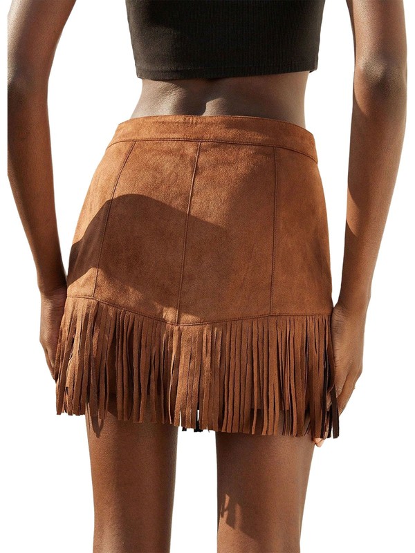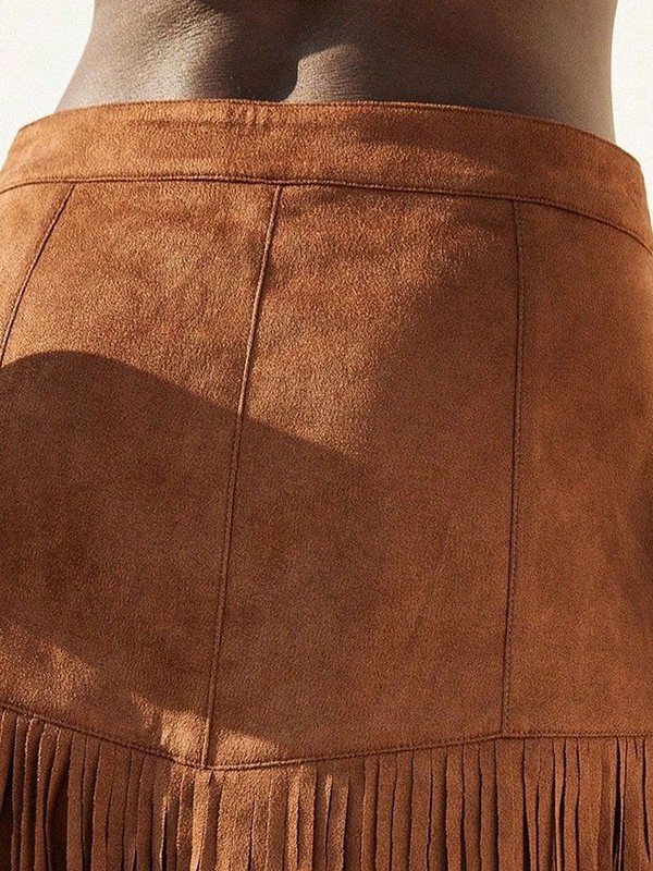 The faux suede material gives the skirt a luxurious and textured appearance, adding a touch of sophistication to your outfit.