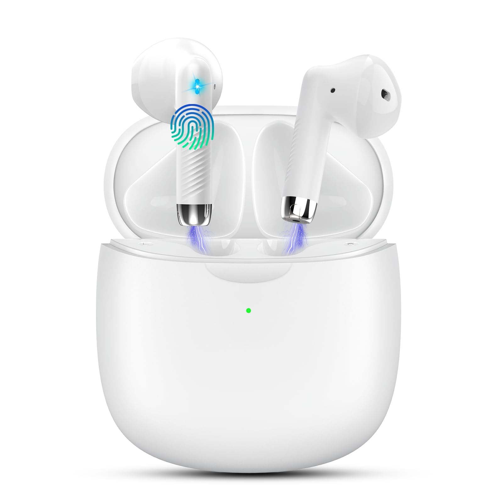 Resistencia al agua IPX7 y control táctil inteligente: Auriculares inalámbricos para Android con control táctil. Puedes controlar la reproducción/pausa de música, la pista anterior/siguiente, subir/bajar volumen, responder/rechazar llamadas, finalizar llamadas y activar la asistencia de voz con solo tocarlos. No necesitas ajustarlos en tu teléfono. Los auriculares impermeables están fabricados con un nanorrevestimiento impermeable de alta calidad que aísla el sudor y la lluvia. Funcionan perfectamente en diferentes entornos y te permiten disfrutar de música de alta calidad en cualquier momento y lugar. Son ideales para deportes al aire libre y trabajo. Diseño deportivo ergonómico, amplia compatibilidad: Los auriculares Bluetooth J51 cuentan con un diseño ergonómico intraaural de 45° que se adapta perfectamente al contorno de la oreja, garantizando un uso estable y cómodo incluso durante largos periodos. Además, estos auriculares inalámbricos ofrecen una excelente compatibilidad, conectándose sin problemas a diversos dispositivos con Bluetooth, como teléfonos y tabletas Android e iOS.