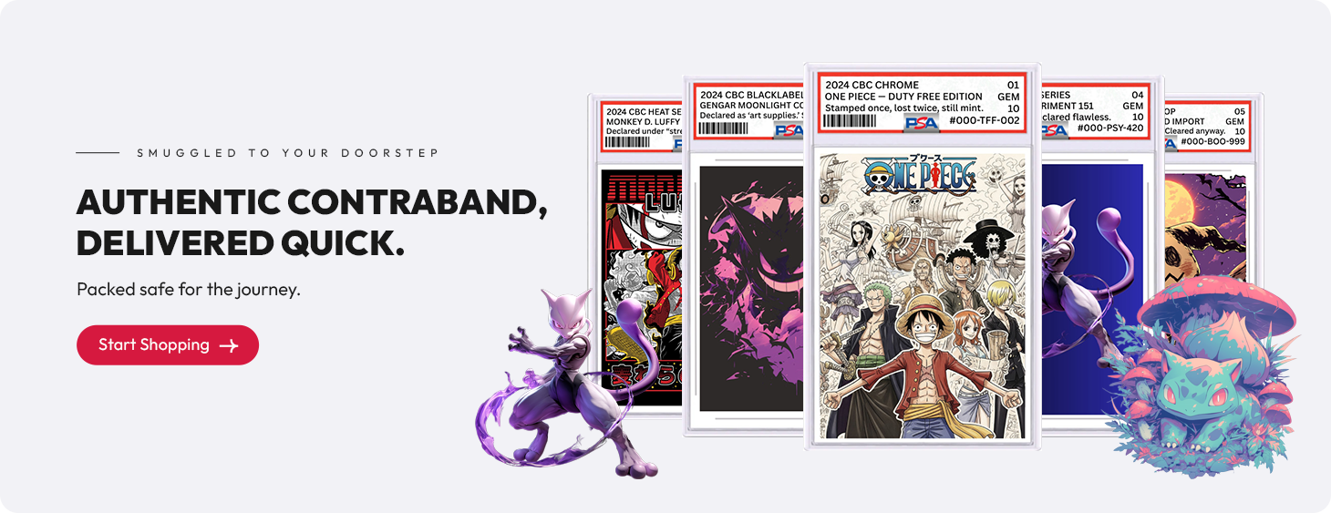 Every card is smuggled (legally) to your doorstep with care and precision. All items are 100% authentic collectibles — tariff-free and shipped from the USA.