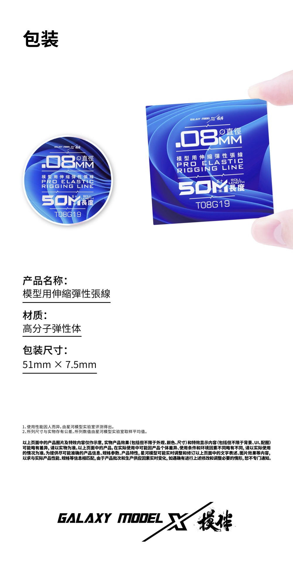 Galaxy T08G19-G21 PRO ELASTIC RIGGING LINE φ0.08mm/0.13/0.05 Length: 50 M
