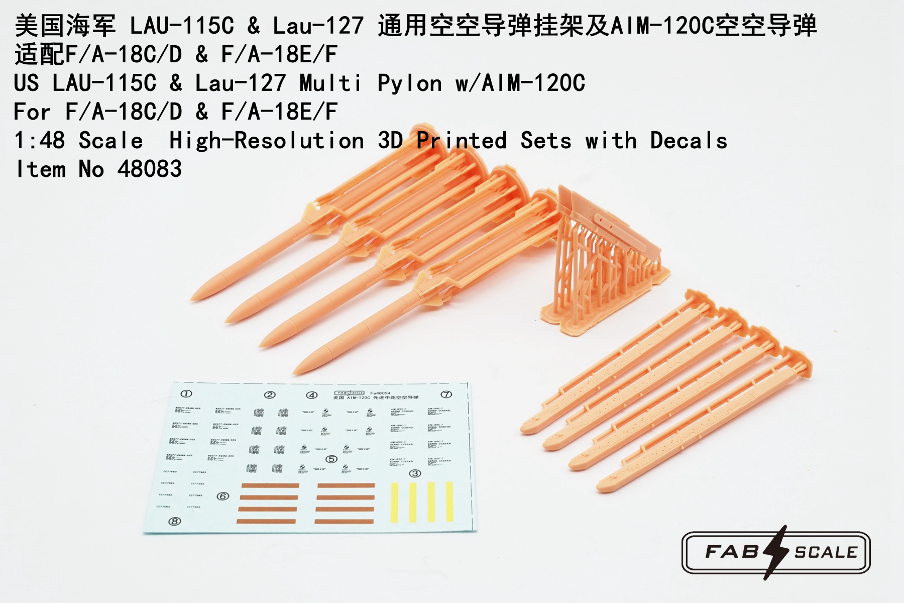 FAB FA48083 1/48 LAU-115C & Lau-127 Multi Pylon W/AIM-120C 3D Printed Sets