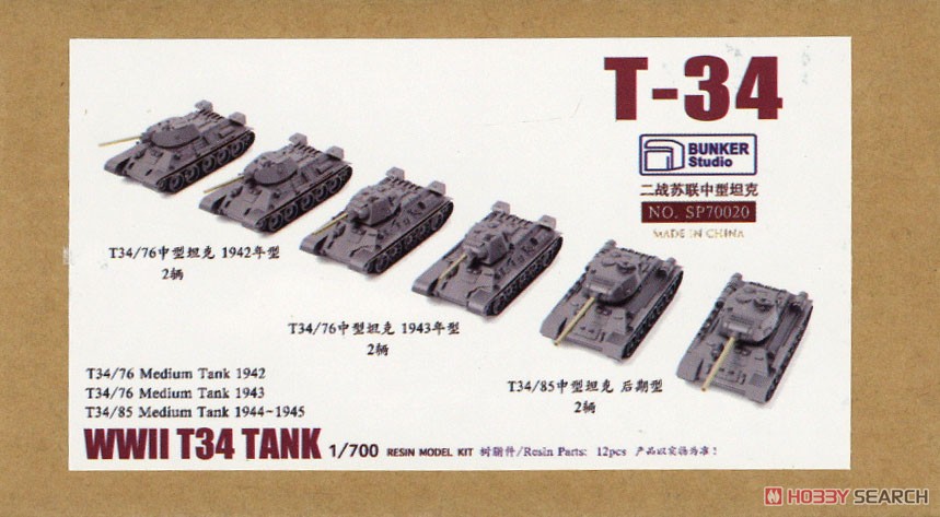 BUNKER SP70020 1/700 WWII T34 Tank (Plastic model)
