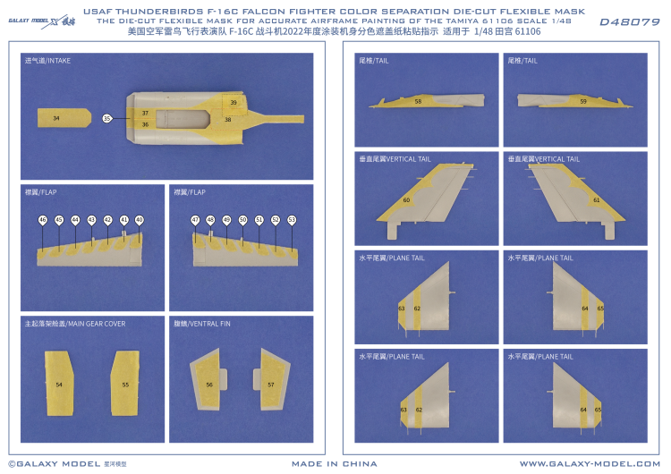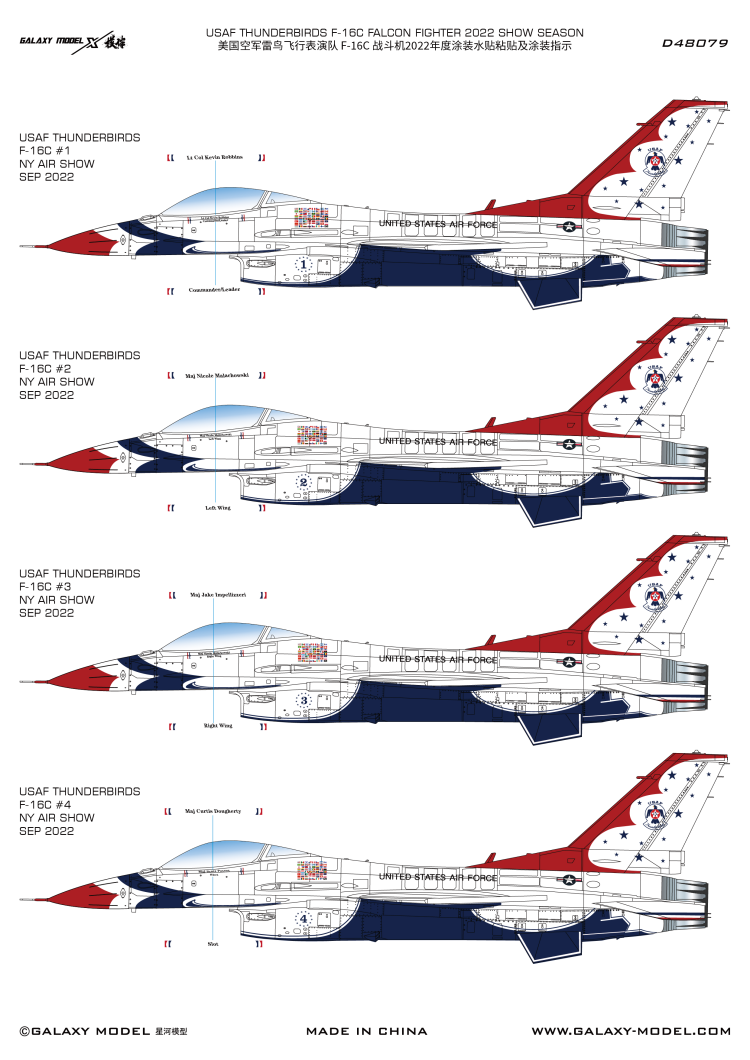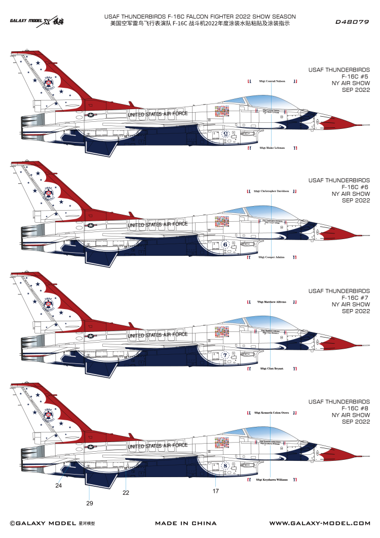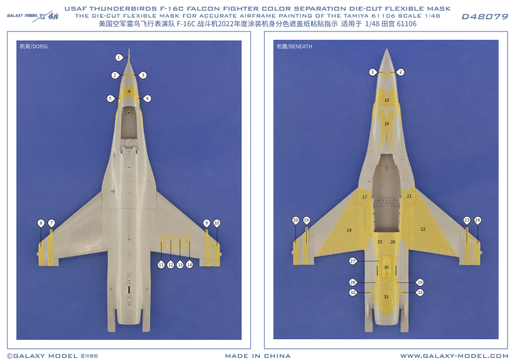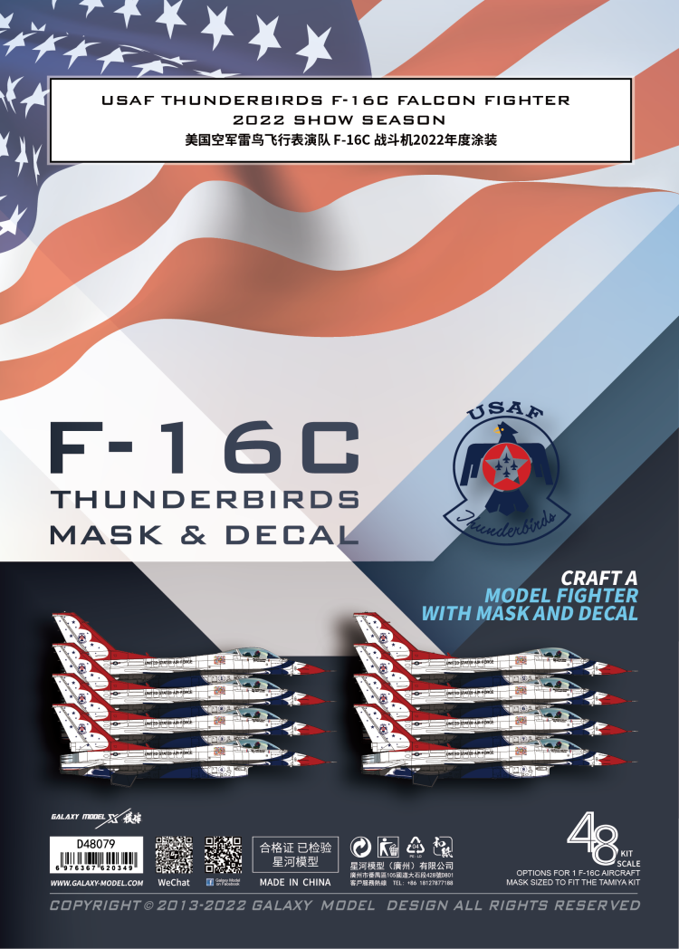Galaxy D48079 USAF Thunderbirds F-16C Falcon Fighter COLOR SEPARATION DIE-CUT