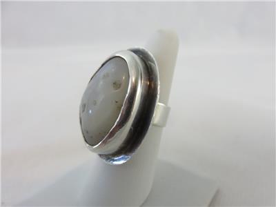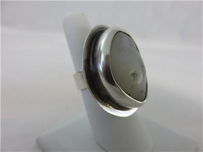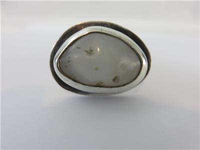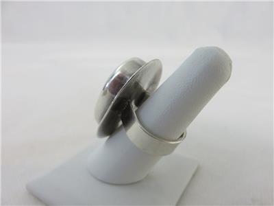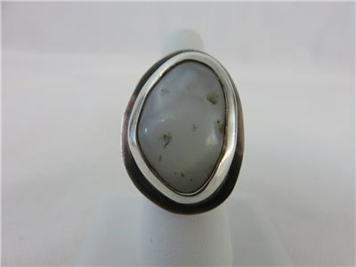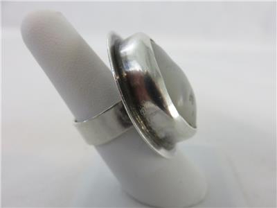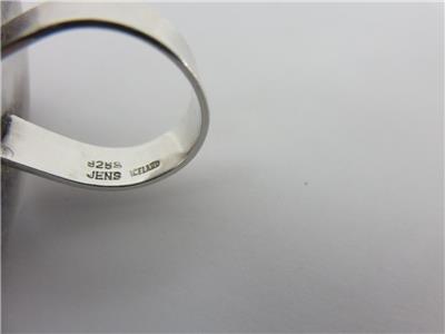 We are offering a true statement ring from JENS, Iceland. Brutalist design with a huge natural stone in a sterling silver setting. Stone is approximately 28mm x 18mm. The gram weight is 23.7. Ring fits a size 8. A truly stunning piece.