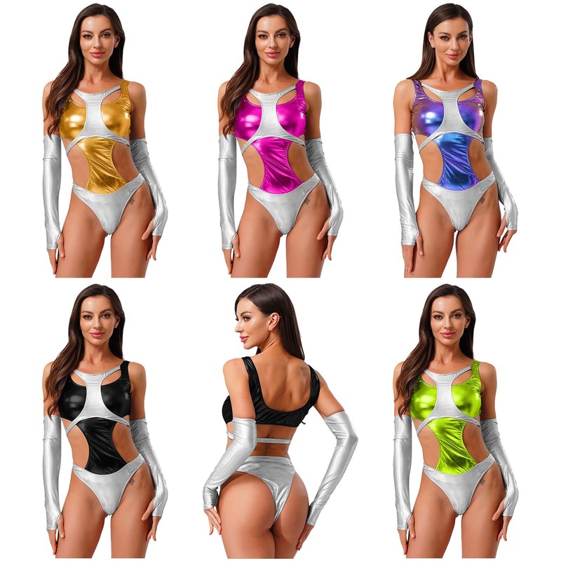 Entworfen mit U-Ausschnitt, ärmellos, kurzer Body mit einem Paar Armstulpen, Reißverschluss hinten für einfaches An- und Ausziehen.