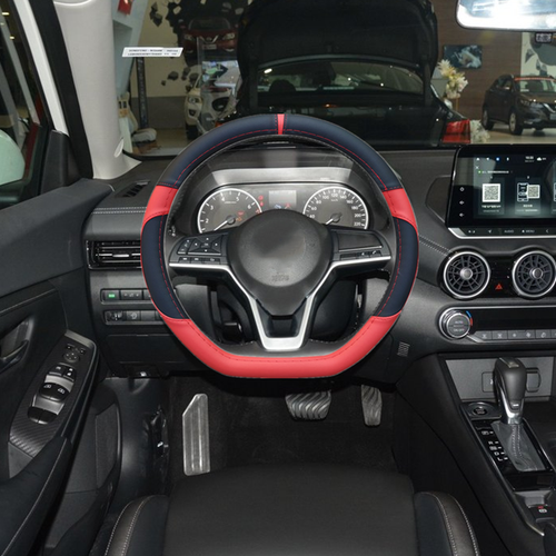 For Nissan Sentra 2020-2024 Black&red PU Steering Wheel Cover D-shape Antiskid