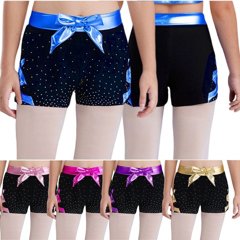 Kids Girls Bottoms Sides Crisscross Shorts Yoga Underpants Shiny Costume DanceUSD 7.49