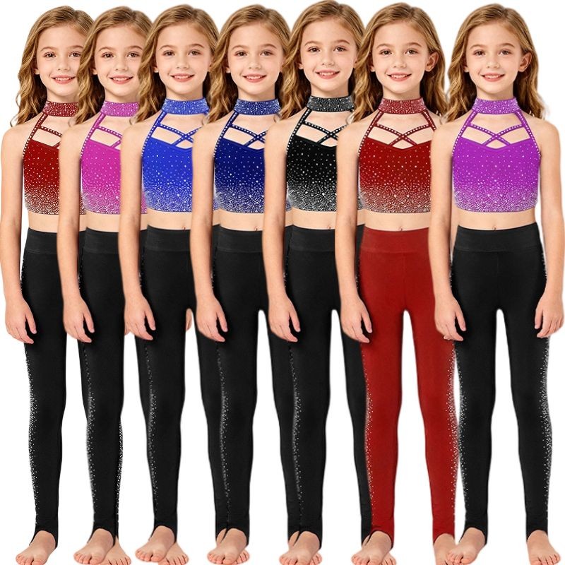 Kids Girls Set Vest Outfit Dance Suit Sports Sleeveless Elastic Waistband JazzUSD 8.49