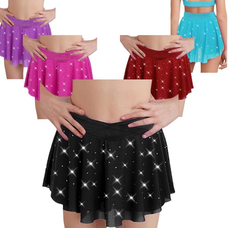 Kids Girls Dancewear Elastic Waistband Skirts Sports Dress Golf Sparkly DanceUSD 7.49