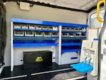 Then in the rear of the van it has had a small fortune spent on it some very nice and smart racking and draw units, storage boxes, heavy duty anti slip floor, extra tie downs, LED internal lights, LED work lights, hot water hand wash, tool safe, extra high security locks on all doors, all at the cost of thousands ££££ when new.