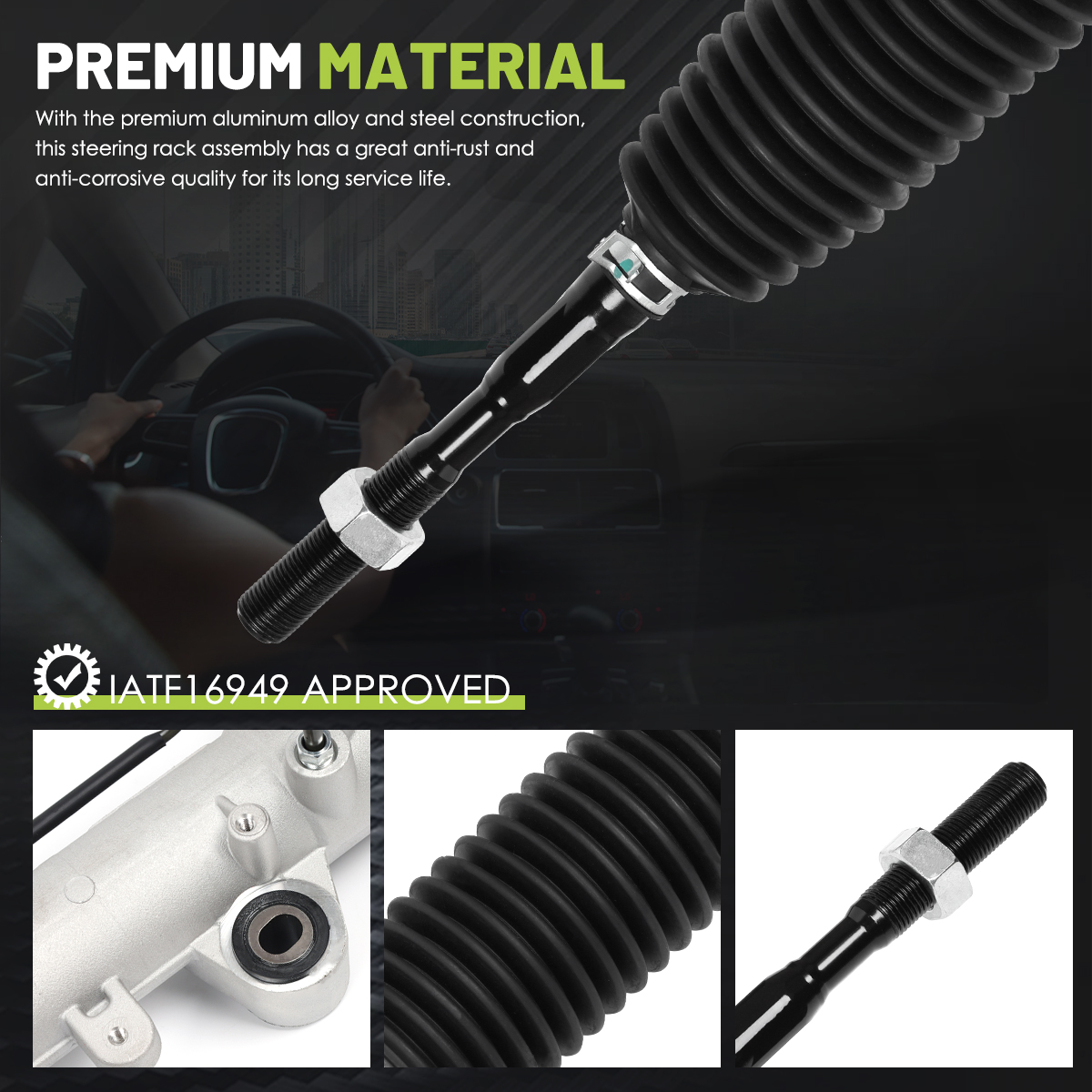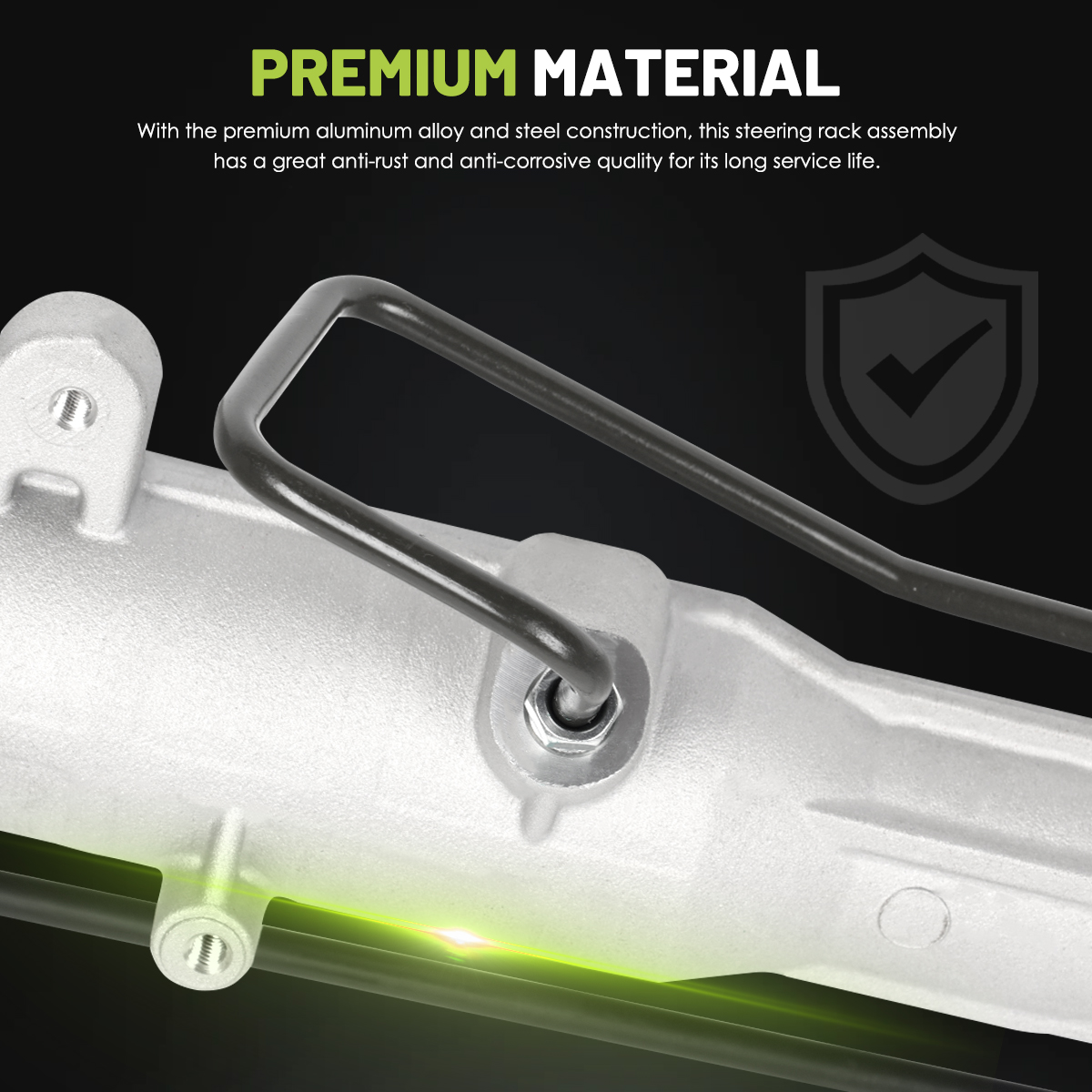 Premium Material:With the premium aluminum alloy and steel construction, this steering rack assembly has a great anti-rust and anti-corrosive quality for its long service life.