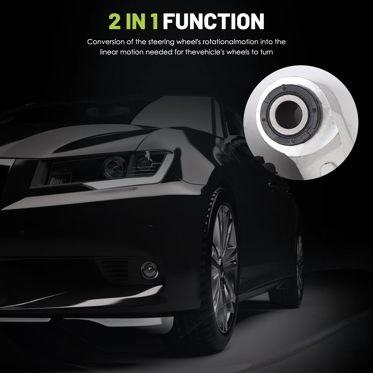 2 in 1 Function:Conversion of the steering wheel's rotationalmotion into the linear motion needed for thevehicle's wheels to turn