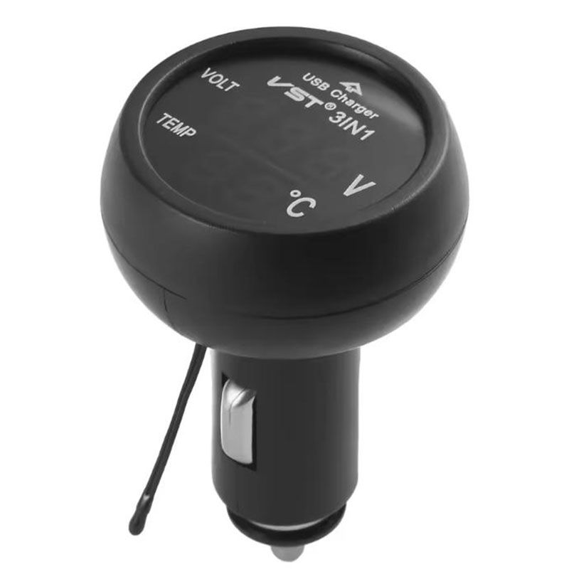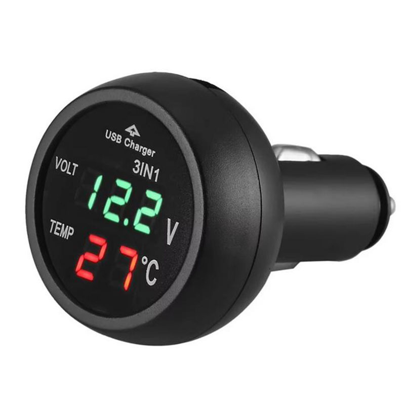 3-in-1 design – voltmeter, thermometer, dual USB charger