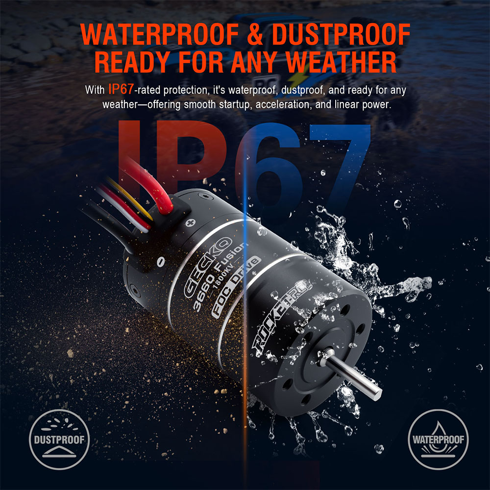 SURPASS HOBBY Brushless Sensored System 2IN1 1800KV Motor 40A ESC Brushless Sensored 2-3S LiPo IP67 Waterproof GECKO 3660 FUSION FOC For 1/10 Cars