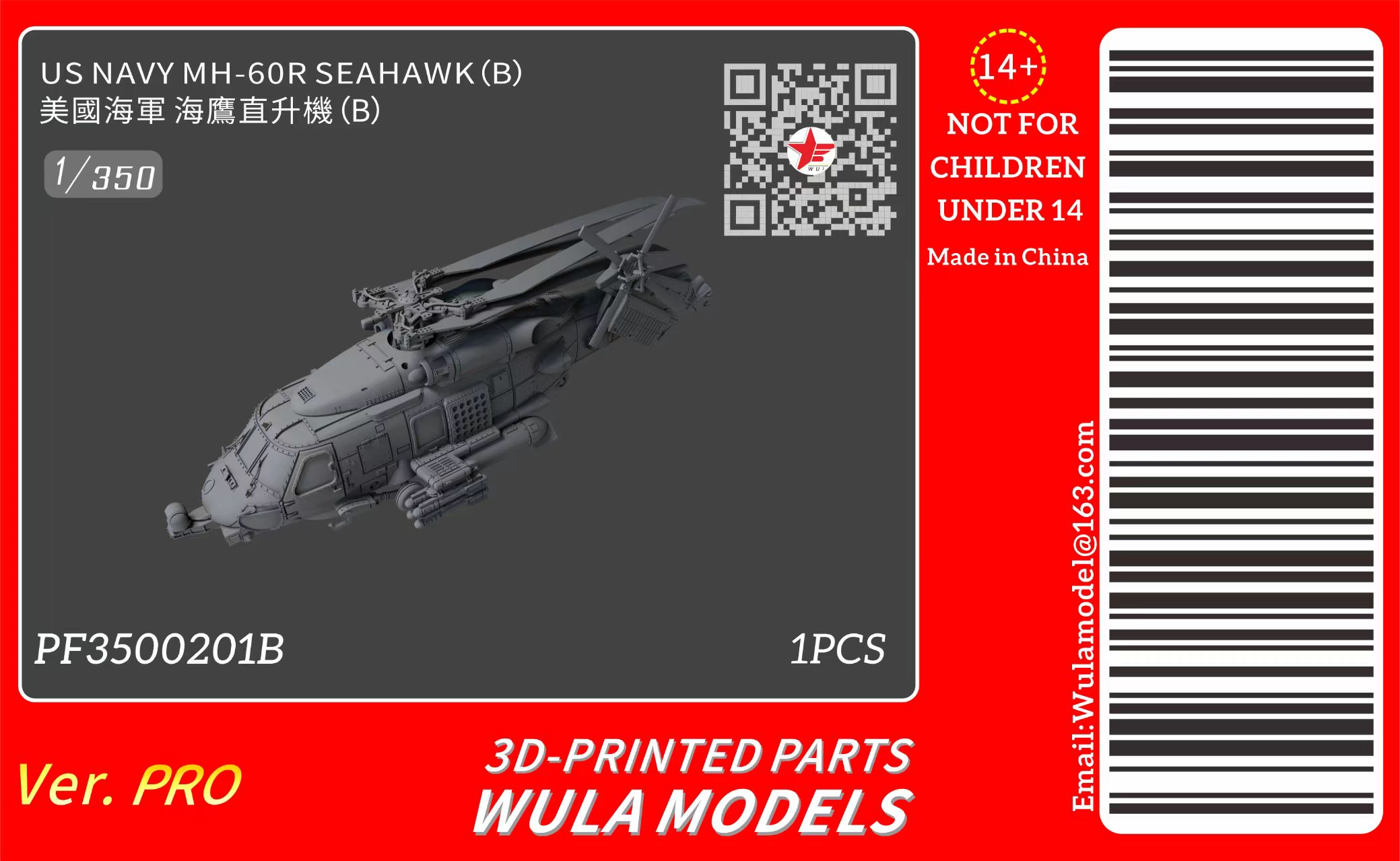 WULA MODEL PF3500201B 1/350 US NAVY MH-60R SEAHAWK(B)3D Printed Parts(1pcs)