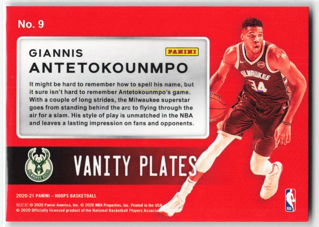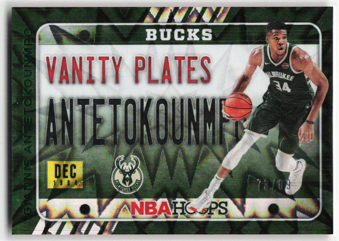 2020-21 Panini Hoops Vanity Plates Green Explosion Giannis Antetokounmpo #9