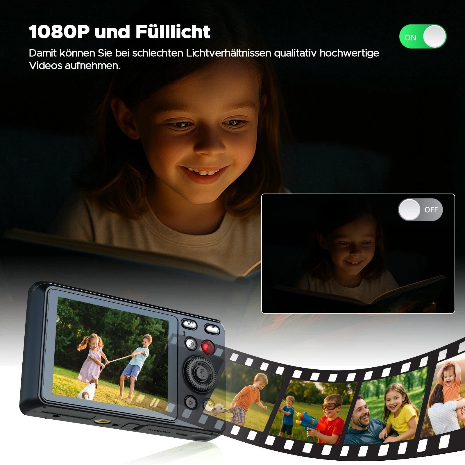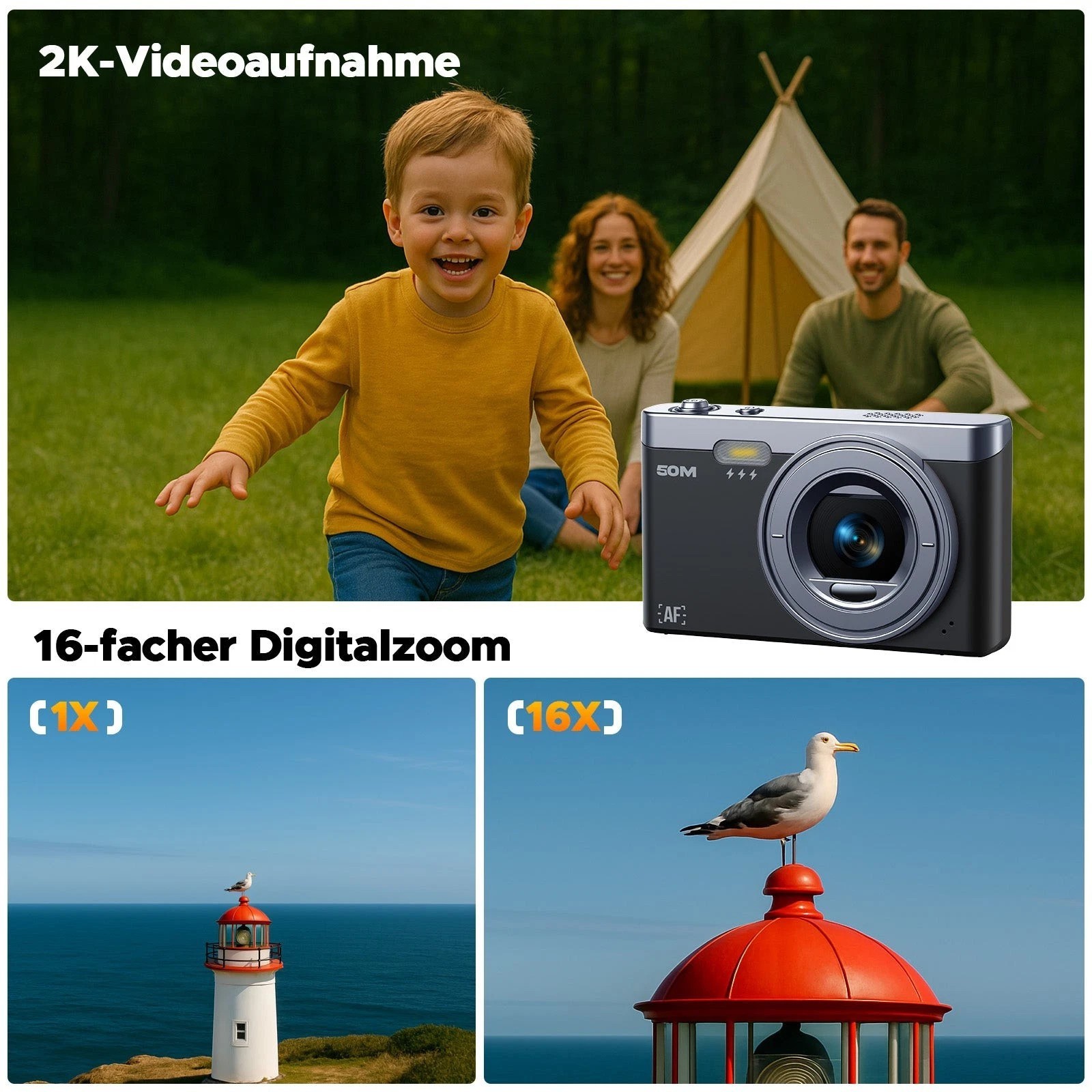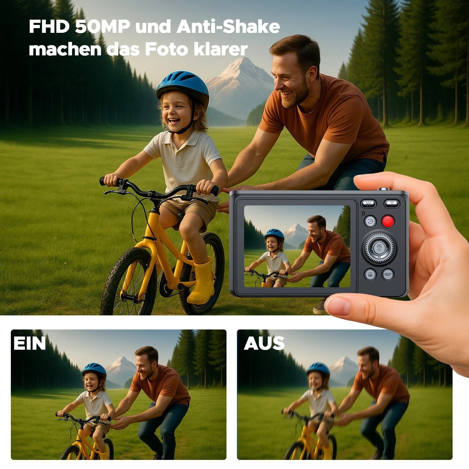 📸【Halten Sie die Schönsten Momente Ihres Kindes Fest】: Diese Digitalkamera mit Full HD 1080P Auflösung und 50MP ermöglicht es Ihnen, Ultra-High-Definition-Videos und Fotos aufzunehmen, die schönen Momente des Lebens festzuhalten und qualitativ hochwertige Animationen lebendig zu reproduzieren, außerdem verbessert die Anti-Shake funktion dieser Fotokamera das Aufnahmeerlebnis für Kinder und Anfänger erheblich und erhöht ihr Interesse an der Fotografie.