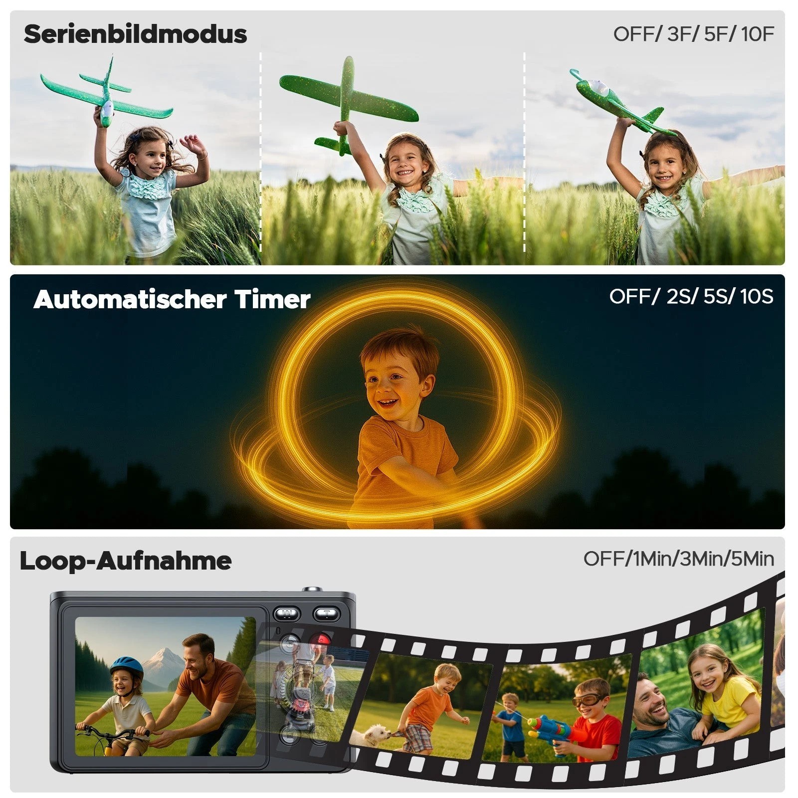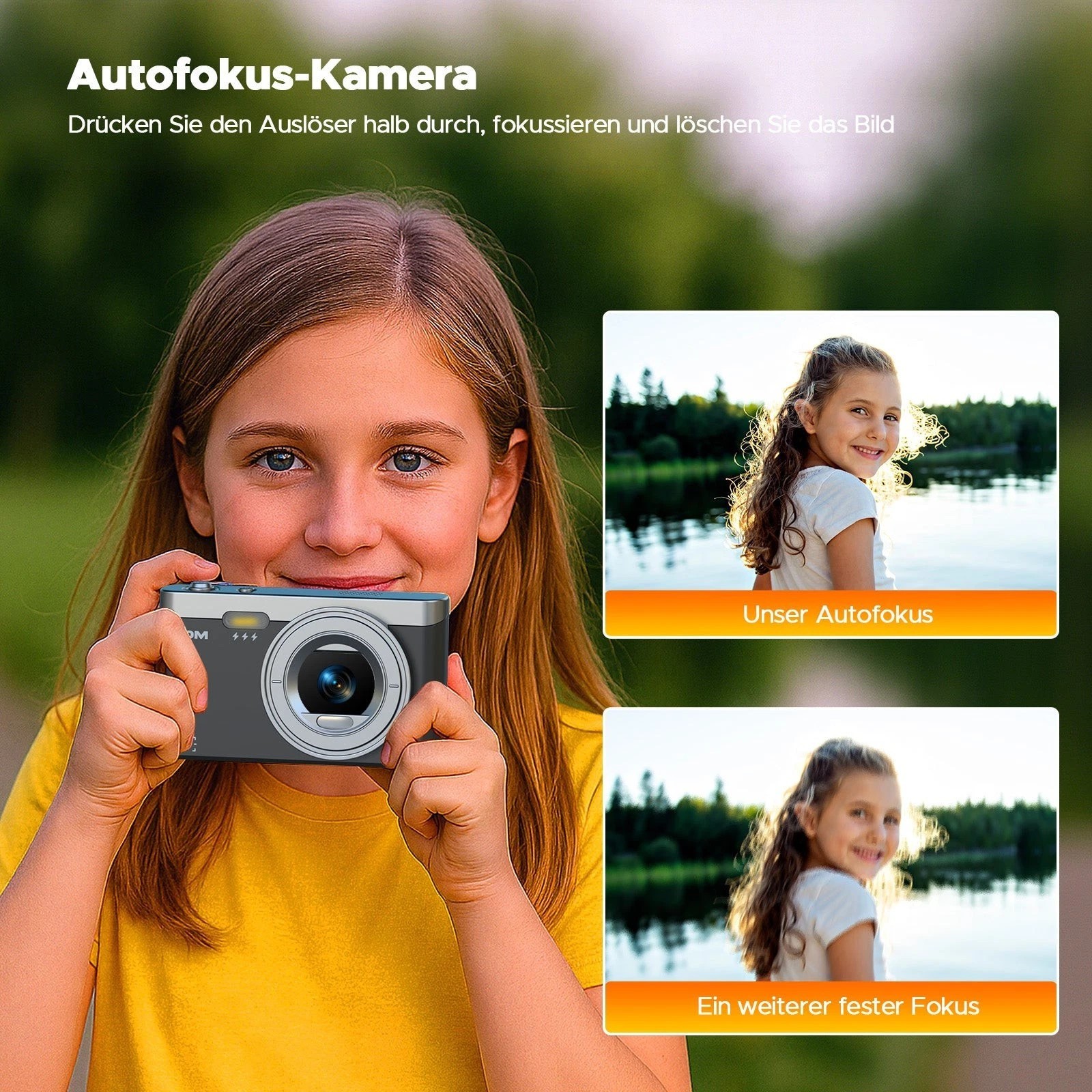 📸【Das Perfekte Geschenk für jeden】: Sie können die Digitalkamera verwenden, um Fotos und Vlogs bei Geburtstagsfeiern, Picknickpartys, Konzerten, Abschlussfeiern und Reisen aufzunehmen. Für diese Fotokamera sind keine fotografischen Fähigkeiten erforderlich,drücken Sie einfach leicht auf den Auslöser. Sie ist eine großartige Digital Kamera für Kinder, Studenten, Erwachsene, Senioren und Anfänger, perfekt als Weihnachtsgeschenk, Geburtstagsgeschenk, Urlaubsgeschenk!