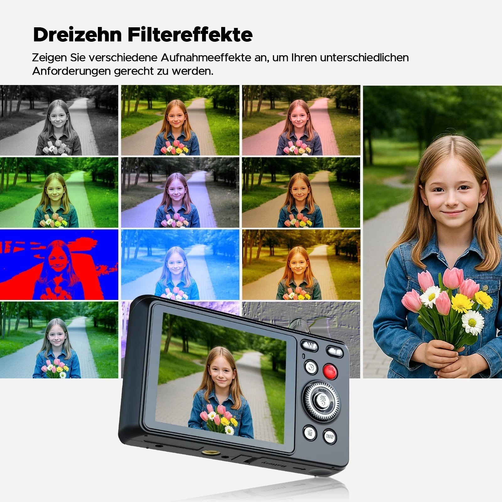 📸【Multifunktionale Kompaktkamera 】– Die Digitalkamera für Kinder unterstützt verschiedene Funktionen wie Selbstauslöser, Gesichtserkennung, Autofokus, Anti-Shake und 17 Arten von Filtern usw., die alle zu einem besseren Aufnahmeerlebnis beitragen. Die Point-and-Shoot-Kamera verfügt über ein eingebautes Mikrofon und einen Lautsprecher, sodass Sie beim Aufnehmen von Videos klaren Ton aufnehmen und Ton für Ihre Aufnahmen wiedergeben können.