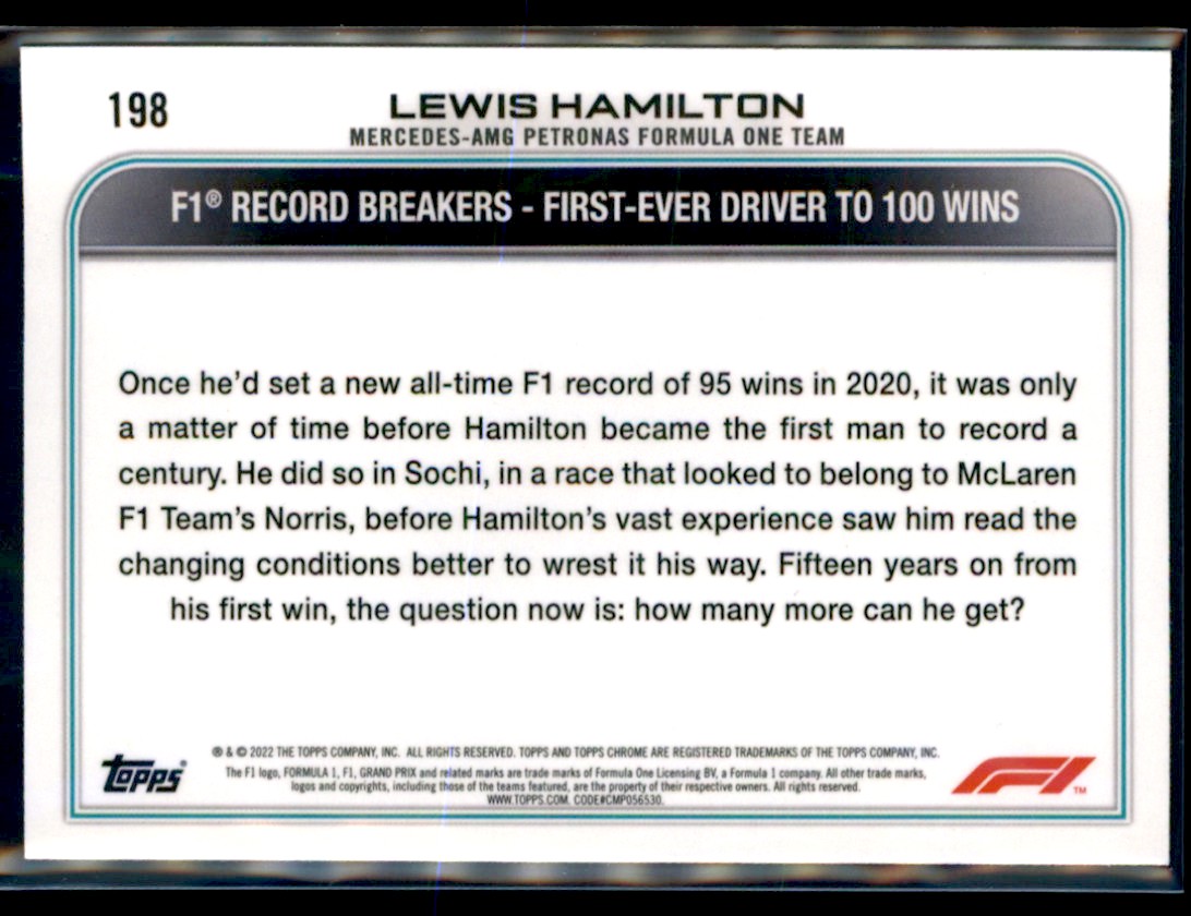 LEWIS HAMILTON 2022 TOPPS CHROME F1 SAPPHIRE #198