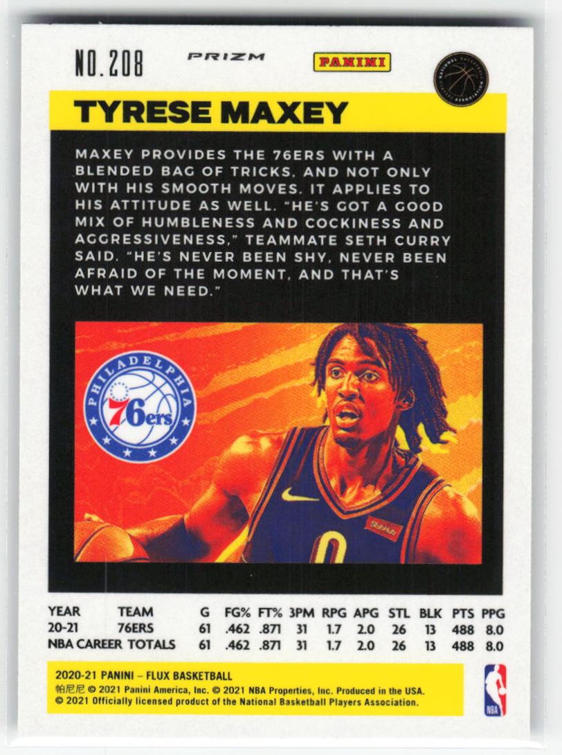 2020-21 Panini Flux Fanatics Silver Cracked Ice Tyrese Maxey RC #208