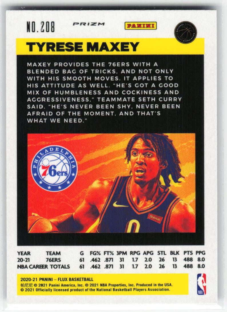 2020-21 Panini Flux Fanatics Silver Cracked Ice Tyrese Maxey RC #208