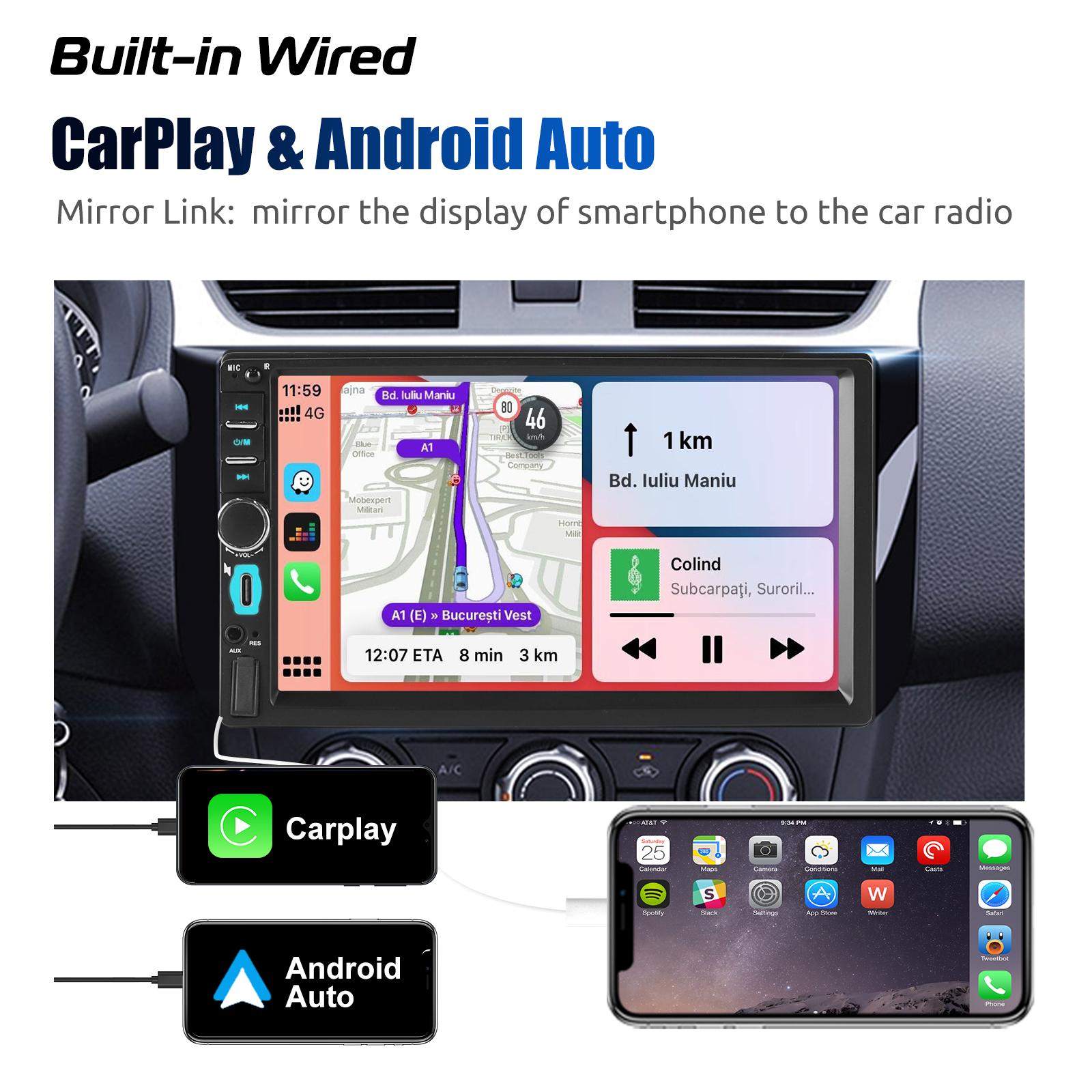 【Phone Mirror Link function】 Mirror Link allows you to synchronize your phone's built-in screen with your car's radio. With Mirror Link, your car's radio displays your phone's screen content. Simply open the navigation app on your phone and use the car's navigation features while driving.