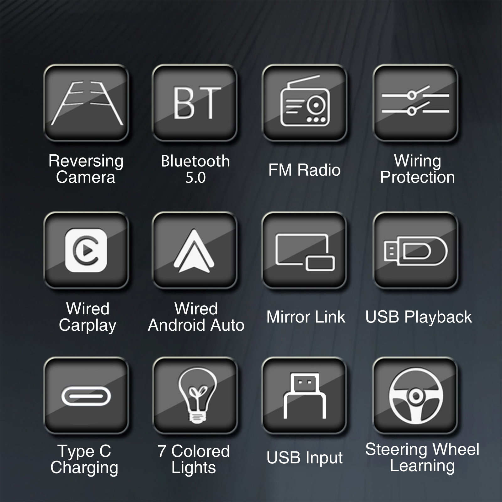 Function support: MP5/reverse/Bluetooth/mobile phone interconnection/wired and wireless carplay/wired and wireless Android auto